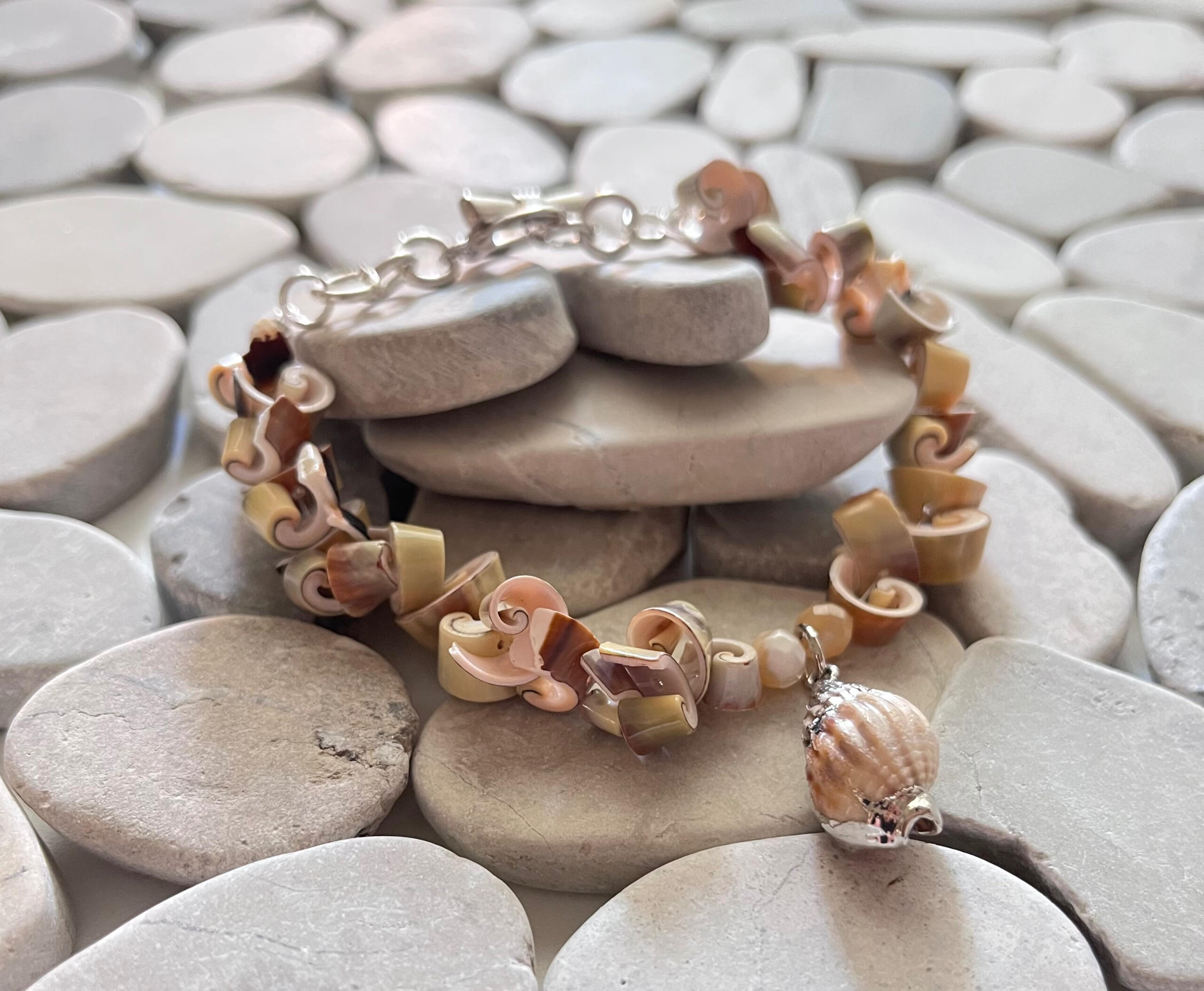 Made with Crystal, Glass, Shell, & Pearl Beads.